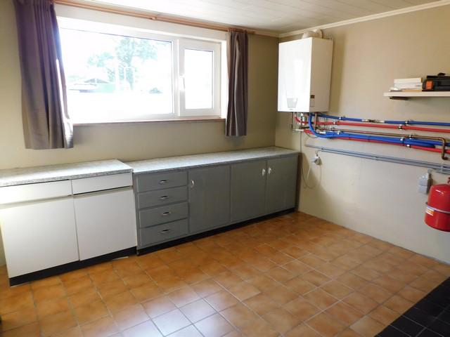 We komen binnen in de inkomhal die toegang geeft tot zowel de leefruimte als de keuken. De leef- en eetruimte vormen een mooi geheel en deze werd voorzien van een gezellige houtkachel. De keuken is uitgerust met een spoelbak, kookvuur, dampkap, microgolf en koelkast met vriezer. Via de keuken heeft u toegang tot de lichtrijke veranda. Verder treffen we op het gelijkvloers een apart toilet, badkamer met lavabomeubel, ligbad en douche en een ruime was- en bergplaats. Via het schuifraam of de deur in de veranda heeft u toegang tot de tuin.