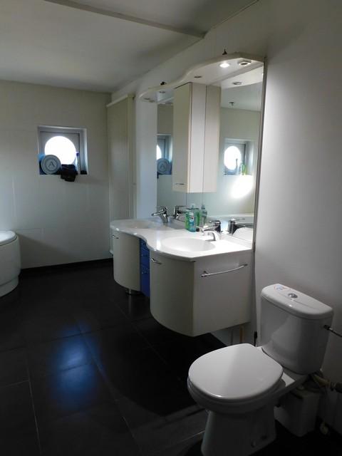 Via de trap in de hal bereik je de bovenverdieping. Hier geeft de nachthal toegang tot twee ruime slaapkamers en een badkamer, uitgerust met een toilet, dubbel lavabomeubel en een ligbad met douchefunctie. Daarnaast is er nog een praktische bergruimte aanwezig. Ook de zolder is bereikbaar via een luik in de nachthal, wat extra opbergruimte biedt.