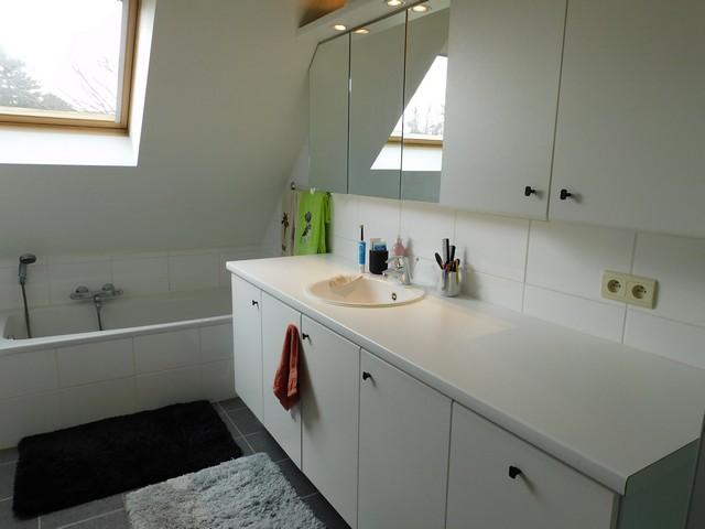 De bovenverdieping is bereikbaar via de natuurstenen trap in de keuken en leidt naar de nachthal. Hier bevinden zich drie volwaardige slaapkamers waarvan één voorzien van inbouwkasten en een badkamer met ruim lavabomeubel, douche, ligbad en toilet. Twee slaapkamers hebben eveneens toegang tot het zijgelegen balkon. Als extra troef is er een ruime zolder die nog volledig naar eigen wens kan worden ingericht.