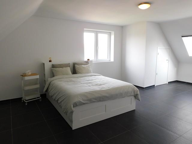 Op de eerste verdieping bevinden zich twee ruime slaapkamers en een stijlvolle badkamer uitgerust met lavabomeubel, toilet en inloopdouche. Via een vaste trap bereikt u de tweede verdieping, waar een derde, bijzonder ruime slaapkamer u tal van mogelijkheden biedt.