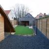 Verder beschikt deze woning over een voorraadkelder en een buitenberging met inbouwkasten en een uitgietbak. De tuin is volledig aangelegd, onderhoudsvriendelijk en omheind. Achteraan bevindt zich een gevloerd tuinhuis. De woning is tevens bereikbaar via een poortje aan de voor- en achterzijde. Ook achteraan kan u parkeren in de ruime garage van +/- 20m² met automatische poort.