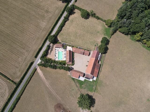 De rest van de schuren zijn momenteel bergruimte maar kunnen getransformeerd worden in meerdere wooneenheden. Losstaand van al deze gebouwen is er nog een bijgebouw waarvan tevens een individuele gîte gemaakt is. De renovatie is nog bezig maar wordt volledig afgewerkt overgedragen aan de nieuwe eigenaar. De tuin is volledig aangelegd en voorzien van ledverlichting en een automatische poort aan de toegangsdreef. Naast de gebouwen ligt nog een extra weide. De totale grondoppervlakte bedraagt +/- 1 ha.