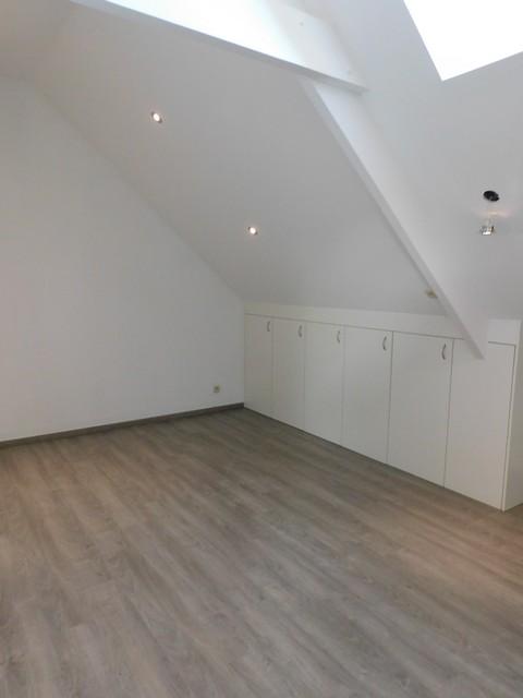 Via de trap in de eetkamer bereiken we het eerste verdiep. Hier bevindt zich een ruime nachthal met inbouwkasten, drie zeer ruime slaapkamers die allen voorzien zijn van inbouwkasten en een badkamer met lavabomeubel, toilet, ligbad en douche.