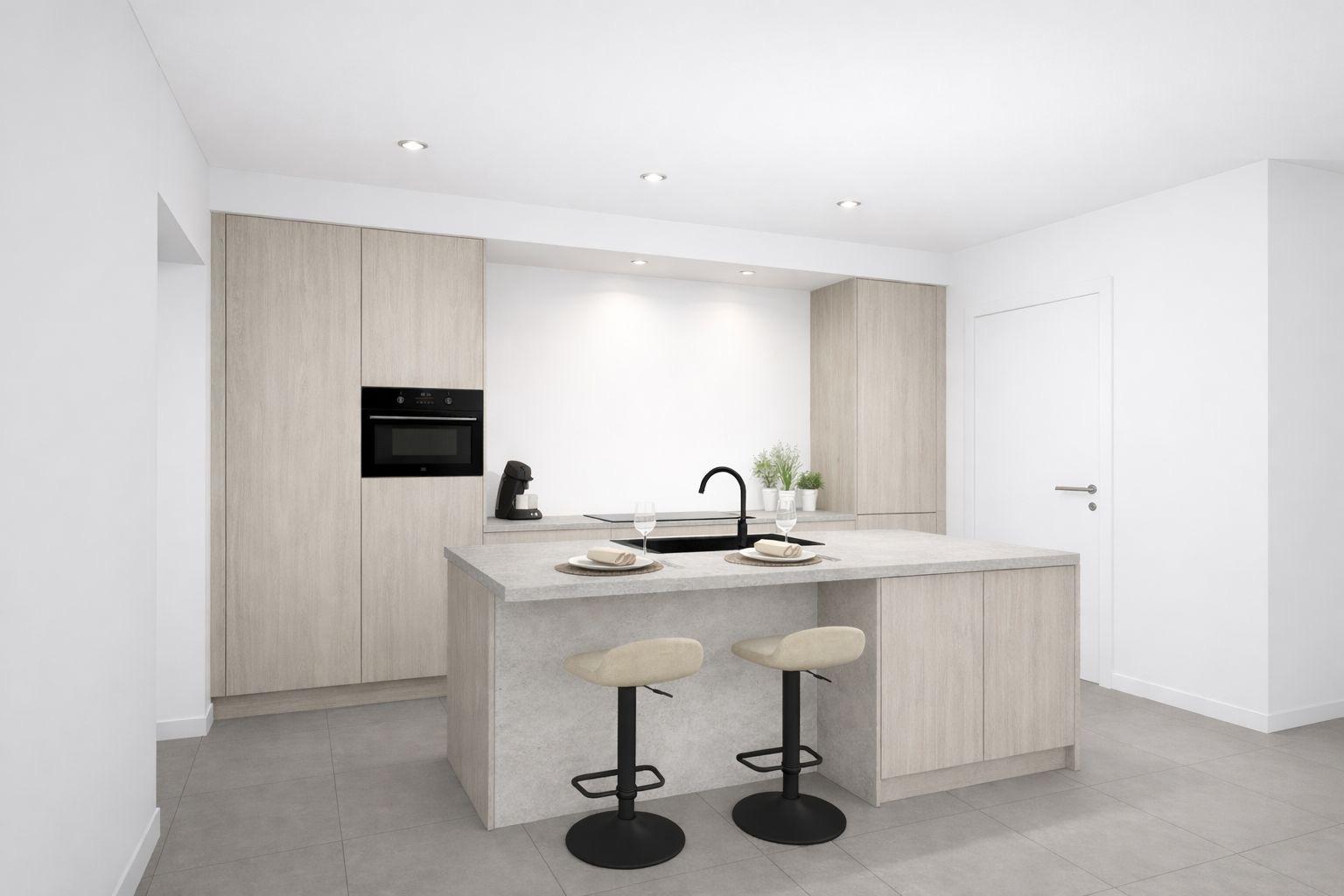 De volledig ingerichte keuken is voorzien van kwalitatieve ATAG-toestellen, waaronder een vaatwasser, inductiekookplaat, combi-oven, dampkap, spoelbak en een ruime koelkast. De stijlvolle badkamer beschikt over een dubbel lavabomeubel en een comfortabele inloopdouche.