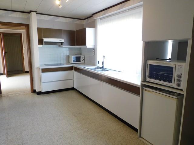 We komen binnen in de inkomhal die toegang geeft tot zowel de leefruimte als de keuken. De leef- en eetruimte vormen een mooi geheel en deze werd voorzien van een gezellige houtkachel. De keuken is uitgerust met een spoelbak, kookvuur, dampkap, microgolf en koelkast met vriezer. Via de keuken heeft u toegang tot de lichtrijke veranda. Verder treffen we op het gelijkvloers een apart toilet, badkamer met lavabomeubel, ligbad en douche en een ruime was- en bergplaats. Via het schuifraam of de deur in de veranda heeft u toegang tot de tuin.