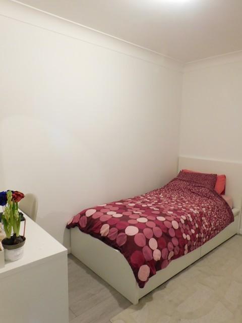 De nachthal, met inbouwkast, geeft toegang tot drie slaapkamers, een apart toilet en de badkamer met lavabomeubel, ligbad met douchefunctie en aansluiting voor wasmachine. De slaapkamers zijn voorzien van een laminaatvloer. Bij dit appartement hoort eveneens een extra berging, gelegen op het gelijkvloerse verdiep en een aparte garagebox in de kelderverdieping. Fietsen kunnen geplaatst worden in de gemeenschappelijke fietsenstalling.