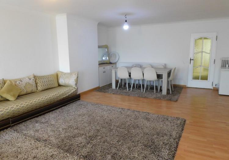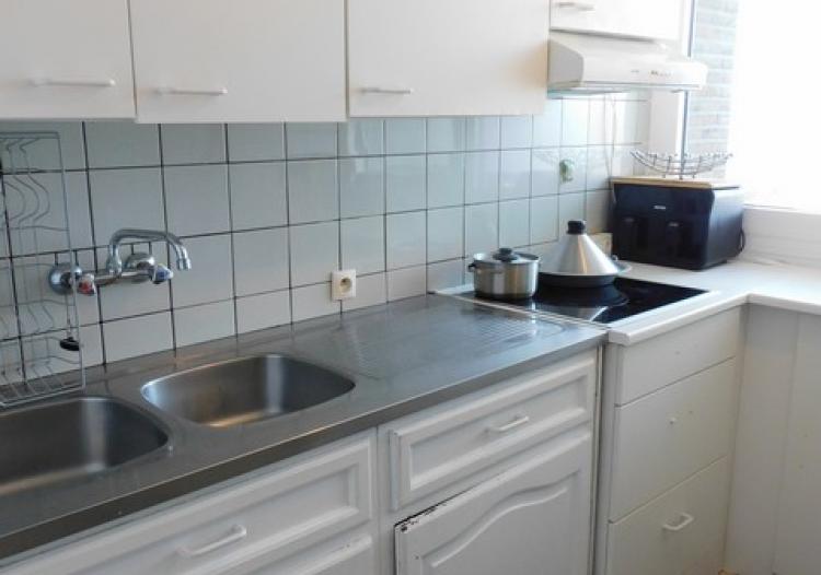 We komen binnen in de inkomhal die toegang geeft tot de keuken en de leefruimte. De keuken is uitgerust met een kookvuur, dampkap en spoelbak. De leef- en eetruimte biedt voldoende plaats voor een gezellige zithoek en eetkamer, perfect om gasten te ontvangen of om tot rust te komen. Via het schuifraam in de lichtrijke leefruimte heeft u toegang tot het voorgelegen terras.