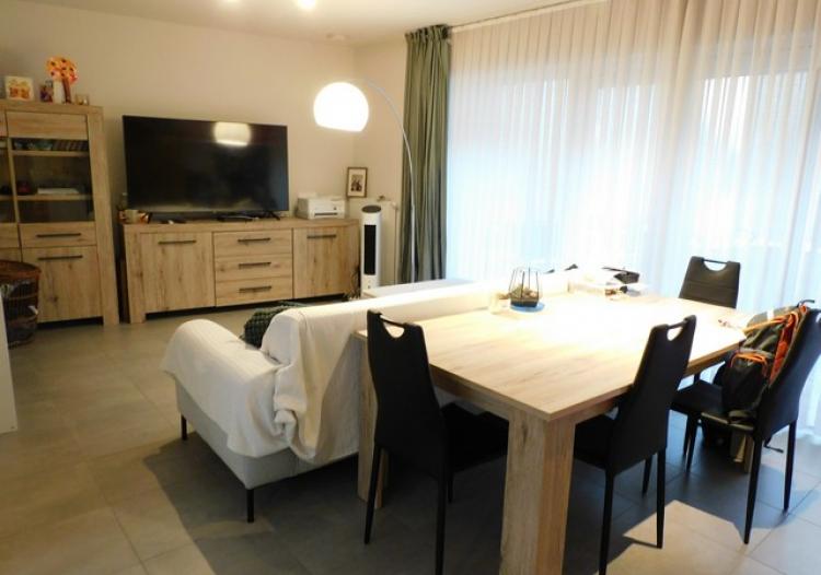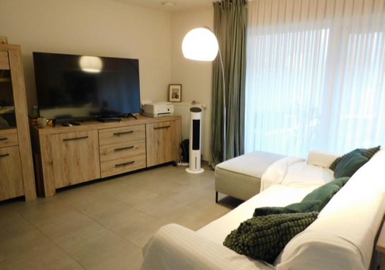 Het appartement heeft een bewoonbare oppervlakte van +/-83m² en beschikt over een ruime hal, leefruimte met geïntegreerde keuken die voorzien is van alle voornaamste toestellen zoals een spoelbak, kookplaat, dampkamp, vaatwasser, koelkast met vriesvak en combi-oven, twee ruime slaapkamers voorzien van laminaatvloer (+/- 14m² en 12m²), een badkamer met lavabomeubel en douche, een apart toilet en een was- en bergplaats voorzien van een inbouwkast. Het zuidelijk georiënteerd privé-terras van +/-47m² is toegankelijk via het grote schuifraam in de leefruimte.