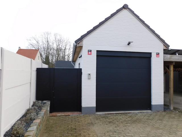 Verder beschikt deze woning over een voorraadkelder en een buitenberging met inbouwkasten en een uitgietbak. De tuin is volledig aangelegd, onderhoudsvriendelijk en omheind. Achteraan bevindt zich een gevloerd tuinhuis. De woning is tevens bereikbaar via een poortje aan de voor- en achterzijde. Ook achteraan kan u parkeren in de ruime garage van +/- 20m² met automatische poort.